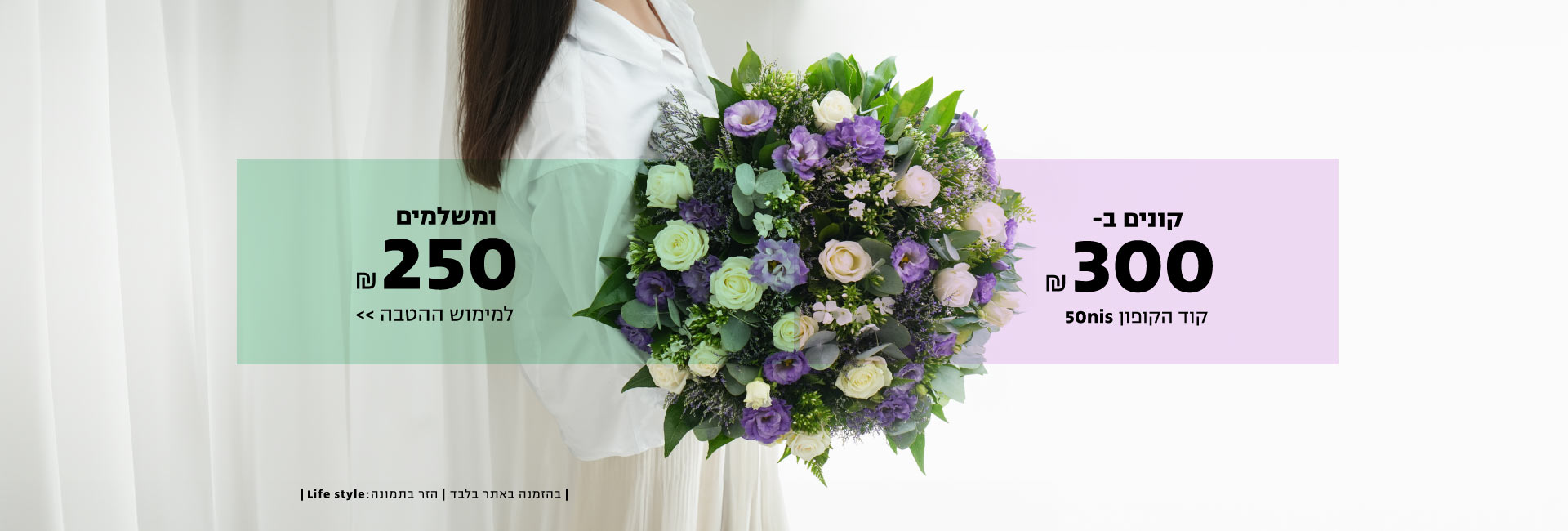 באתר תוכלו לקבל מידע על משלוחי פרחים ופינוקים מכל הסוגים, כגון עציצים, סחלבים, חבילות שי, סלסלות פירות, זרים מתוקים, מתנות לבני הזוג, ליולדת ועוד. אתר חנות הפרחים, מאפשר סינון מוצרים לפי מגוון רחב מאוד של קטגוריות העונות על כל צורך: צבע, אירוע, סגנון וכמובן לפי מחיר. בלחיצת כפתור אחת, תוכלו גם ליהנות משירות משלוח אמין ובטוח המתפרש על אזורים רבים ברחבי הארץ. אנו מתחייבים למתן שירות מיידי, מהיר, נעים ונגיש. בנוסף תוכלו ליהנות משירות התזכורות שלנו ולקבל תזכורת לאירועים חשובים לכם וליקיריכם!